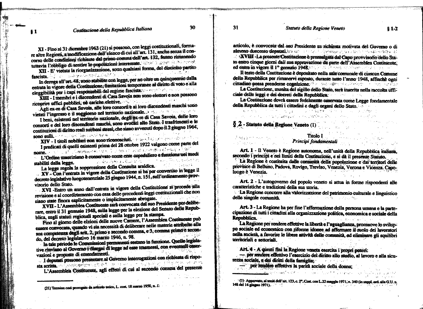 Estratto dello statuto della Regione Veneto pubblicato sulla gazzetta ufficiale che riconosce: